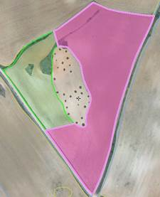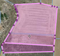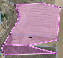(M): sirve para alterar la superficie de una o más LDG, bien añadiendo o desplazando cualquiera de sus vértices (representados con círculos), bien eliminándolos pulsando sobre ellos. En el panel de mensajes se mostrará dinámicamente la superficie modificada. Para modificar un perímetro colindante a varias LDG, se pueden seleccionar dichas LDG de forma que se puedan mover de forma solidaria sus vértices comunes.