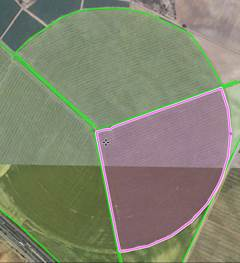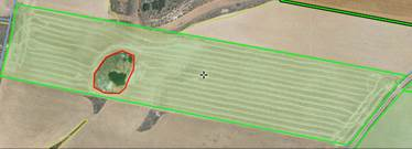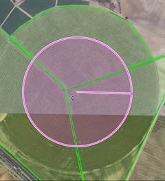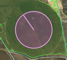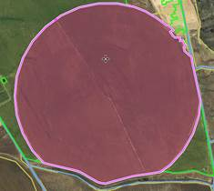 (C): permite crear una LDG nueva con una superficie circular digitalizando su centro y radio. La LDG se creará sobre el recinto SIGPAC donde se marque el 2º punto. En el panel de mensajes se mostrará dinámicamente la superficie definida. Si la LDG activa no tiene geometría, se asignará la obtenida con la herramienta.
