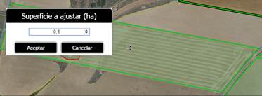 (R): modifica la geometría de las LDGs seleccionadas de forma que su superficie se ajuste a 2 decimales, como múltiplo de 100 m2. Las LDG deben tener espacio libre dentro del recinto SIGPAC en alguno de sus lados para poder realizar el ajuste.
