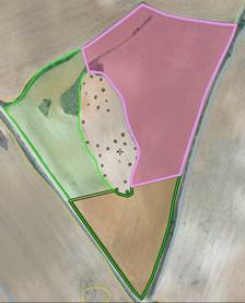 (N): crea una LDG en el espacio no ocupado por otras LDG de la misma solicitud para evitar la creación de solapes entre ellas. Esta es la herramienta más simple para crear LDG a partir de recintos SIGPAC. Si la LDG activa no tiene geometría, se asignará la obtenida con la herramienta. En caso contrario, se creará una nueva LDG y se indicará en la pantalla selección que no tiene parcela agrícola definida mediante el texto N/D.