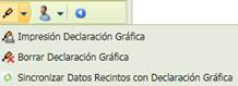 Existen algunas funcionalidades a nivel de solicitud que son exclusivas para las solicitudes que tengan componente gráfica: impresión de parcelas agrícolas, eliminación del componente gráfico de la solicitud y sincronización de los datos alfanuméricos de recintos con la declaración gráfica.