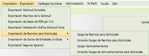 Contenido 6.6.7 Importación-Exportación. Importación de Recintos para Solicitudes: Carga de Aprovechamientos para Solicitudes